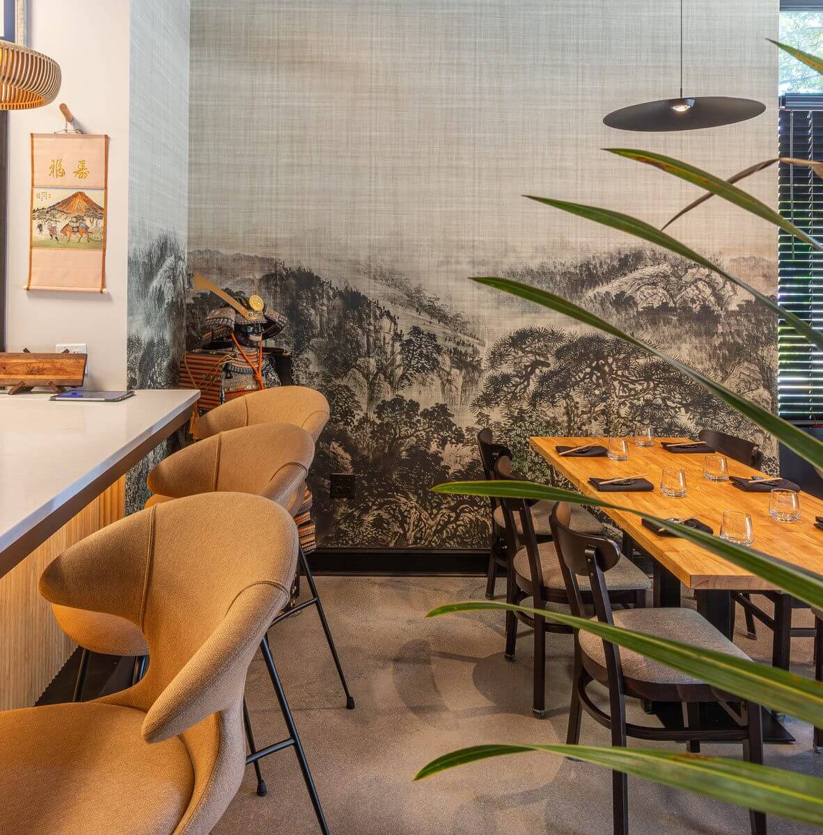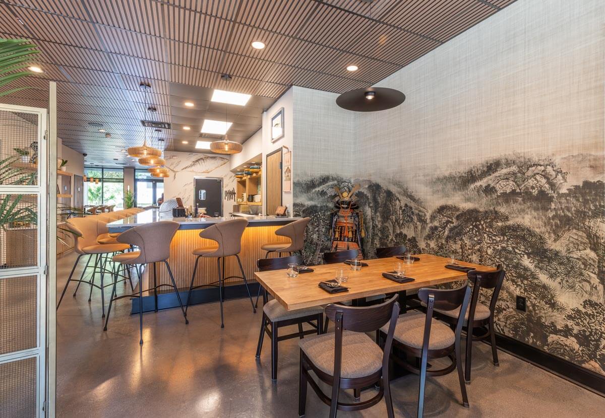 Wilmington erős tengerparti identitással rendelkezik, és egyre nyitottabb a kifinomult, nemzetközi hatásokra. A tervezők célja nem az volt, hogy direkt módon „összemossák” a japán és az észak-karolinai világot, hanem hogy hidat építsenek közöttük. A japán precizitás és letisztultság találkozik a déli vendégszeretet melegségével – ugyanúgy, ahogy az étterem konyhájában a japán technikák helyi alapanyagokkal párosulnak.